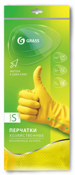 ლატექსის ხელთათმანი მრავალჯერადი GRASS, ზომა S, ყვითელი