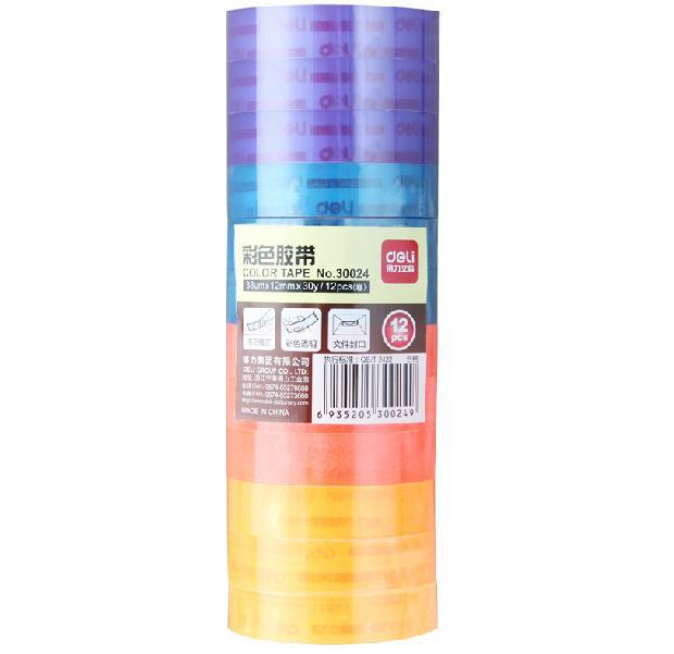 სკოჩი საკანცელარიო, ფერადი, 12 მმ x 27 მეტრი, გამჭვირვალე, 12 რულონი