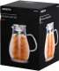 ბოროსილიკატის შუშისგან დამზადებული დოქი სილიკონის და უჟანგავი ფოლადის თავსახურით. ცხელი და ცივი სასმელებისთვის.